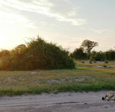 From Mababe the route moves into Khwai for two nights within the Moremi Game Reserve ecosystem. The presence of water becomes more pronounced. Floodplains shimmer with life. Lechwe bound through shallow channels. Lion rest in the shade of leadwood trees. Leopard navigate riverine forest with quiet precision. Wildlife density increases and each game drive carries a sense of anticipation.