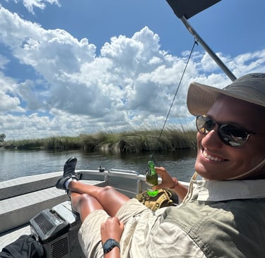 The final chapter unfolds over two nights in Xakanaxa in the Okavango Delta. Permanent lagoons and winding channels define the landscape. Here the safari slows and deepens. A mokoro excursion glides silently through reeds, bringing you close to water lilies, birdlife and the subtle movement of the delta. A boat cruise in Xakanaxa reveals the waterways from another perspective, where hippo surface in still water and crocodile bask along the banks.