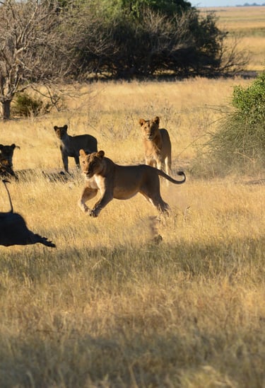From the river you move deeper into Savuti for three nights, where the landscape turns raw and untamed. Open plains and mopane woodland stretch wide beneath dramatic skies. This is predator country. Lion dominate the terrain. Hyena call through the darkness. Elephant bulls roam between waterholes. Savuti carries a sense of tension and authenticity that feels unmistakably wild.