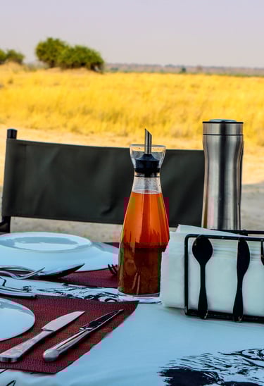 A dedicated team moves with you. They rise before first light, they prepare, they guide, they host. At dawn the camp folds back into itself, canvas lowered, traces erased. By afternoon it rises again in a new place, as if it has always belonged there.