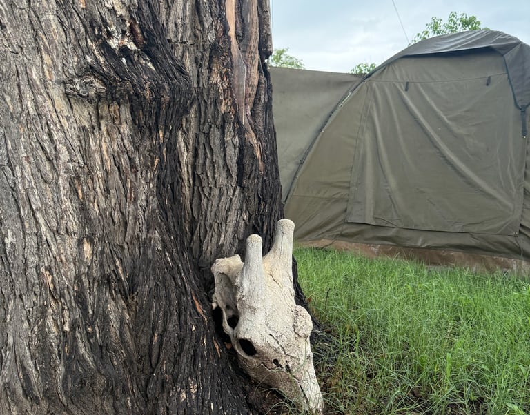 There is no power inside the tents. When darkness falls, it is complete and honest. Devices may be charged in the vehicles during the day, just enough to preserve memories. There is no WiFi. Only space. Only stillness. Only the quiet recalibration that happens when the world falls away and the bush takes over.